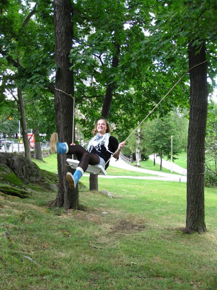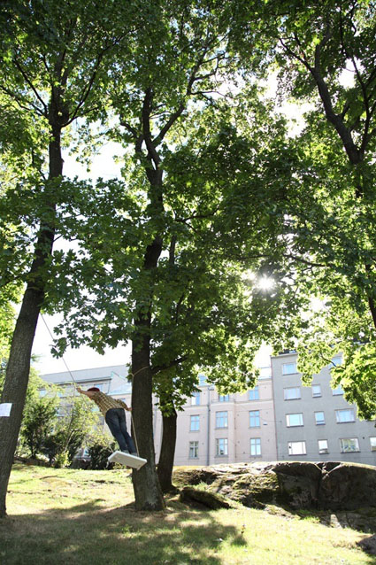 City Swings is a functional installation for an adult citizen. The work consists of 20 adult sized swings, a place for sitting, staying and swinging and at the same time enjoying of the green Töölö bay environment.